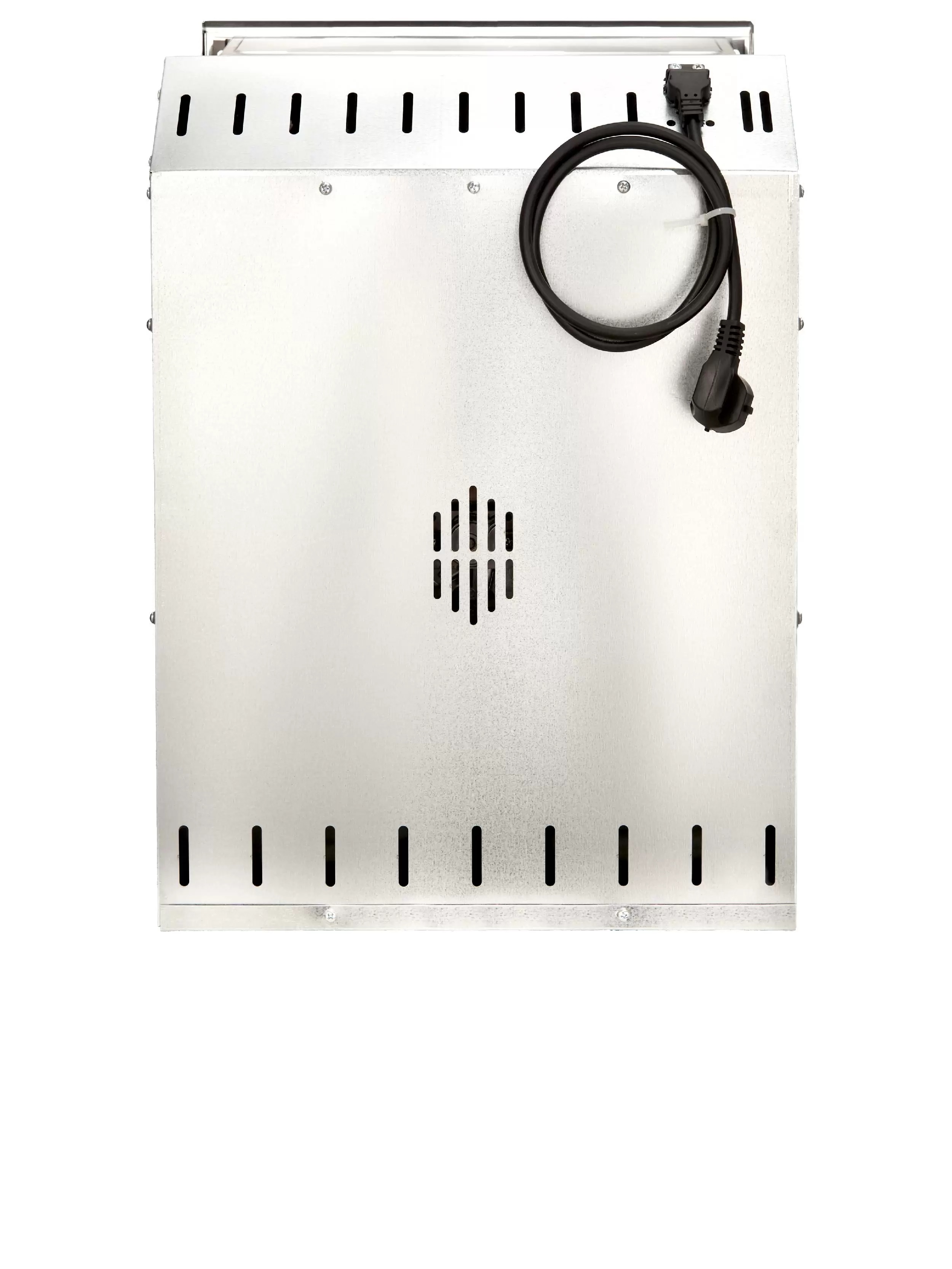 Электрический духовой шкаф встраиваемый узкий, 45 см, 7 режимов, объем духовки 52л, утапливаемые переключатели, дисплей Snow White, фронтальная поверхность Full Black, хромированные боковые решетки, панель управления - черное стекло, универсальный противень, дополнительный противень, решетка-гриль, двойное стекло дверцы, максимальная температура приготовления 300 оС, регулировка яркости дисплея и громкости звукового сигнала, защитное отключение при перегреве, охлаждающий вентилятор, электронный таймер 10 часов, 450х565х596 мм.