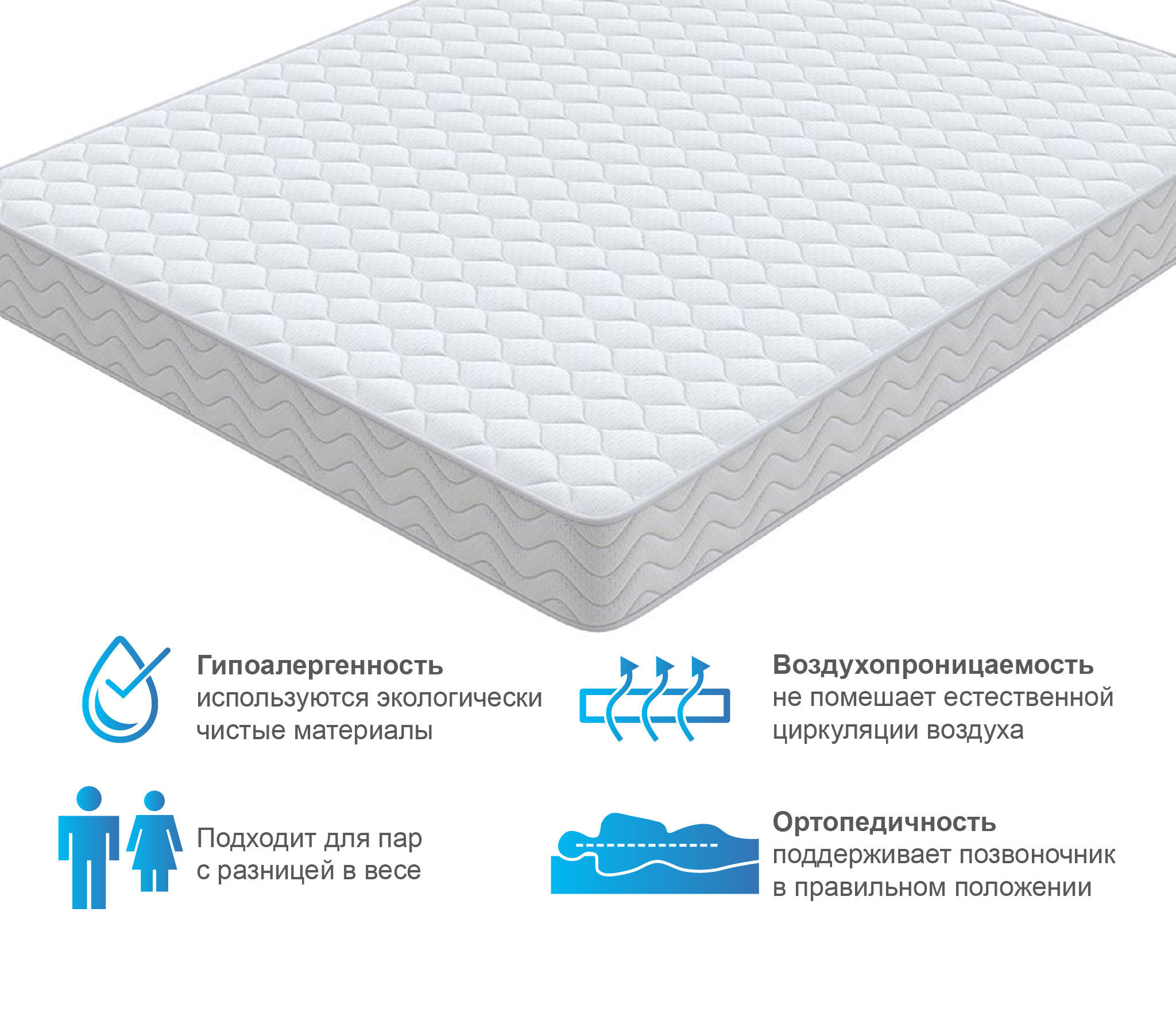 Основой служит зависимый пружинный блок Боннель. В нем все конусные стальные пружинки (126/м2) соединены между собой и скреплены при помощи специальной рамы. Изделие способно выдерживать высокие нагрузки. Над блоком в 1см расположена латексированная кокосовая койра. Это покрытие на основе жестких кокосовых волокон, но смягченных натуральным латексом. Наполнитель улучшит осанку, поддержит корсет из мышечной ткани.